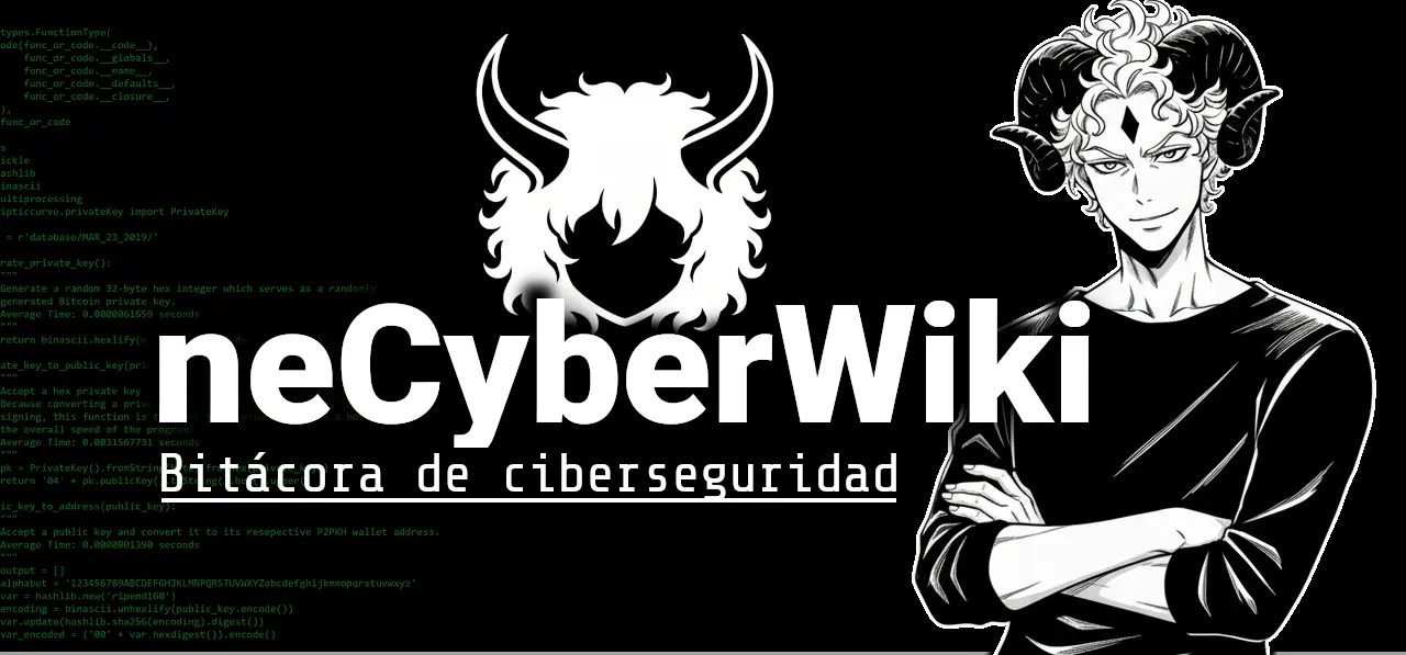 La neCyberWIKI es mi cuaderno abierto: notas que apliqué tal cual, pensadas para pentesting, scripting, privacidad y pura practica, nada de promesas vacías. Sigo afinando mis habilidades a diario para objetivos concretos y, sobre todo, porque todo esto me apasiona. Aquí comparto lo que realmente me funciona para avanzar.