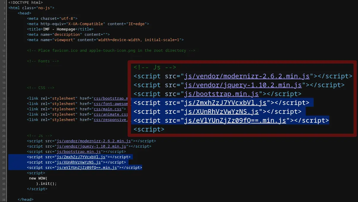 Encontramos unos segmentos de JavaScript encriptados en base64. Esto es bastante curioso de ver en un código fuente, porque cuando juntamos todos los segmentos obtenemos la cadena: “ZmxhZzJ7YVcxbVlXUnRhVzVwYzNSeVlYUnZjZz09fQ==”