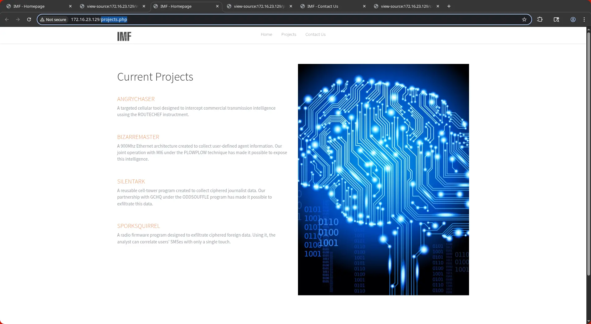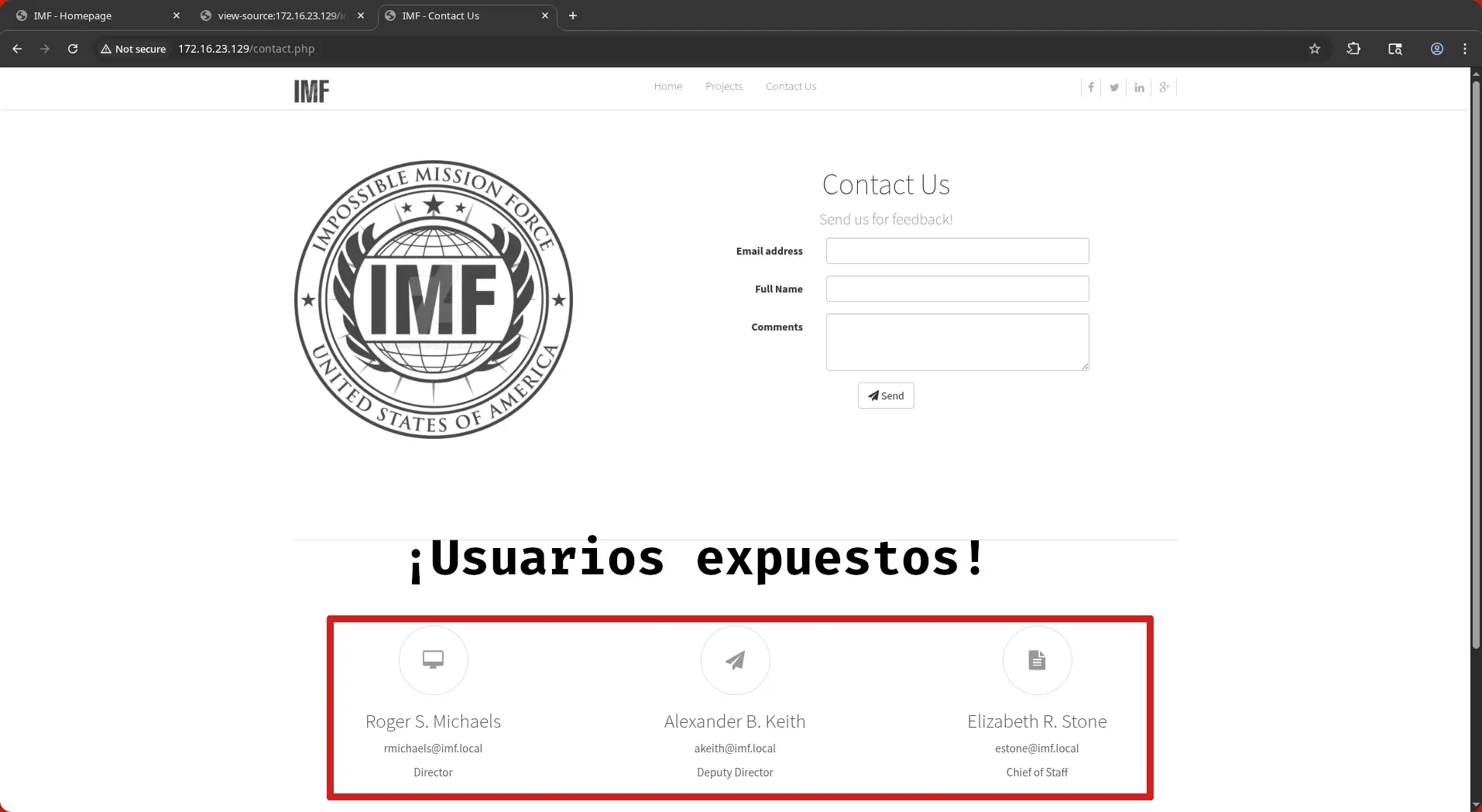 IMF: 1 es una máquina Boot2Root de dificultad moderada alojada en VulnHub, diseñada para simular el entorno de una agencia de inteligencia ficticia (“Impossible Mission Force”). A diferencia de los CTF tradicionales, el reto destaca por integrar múltiples flags progresivas, donde cada una revela la pista necesaria para la siguiente etapa.