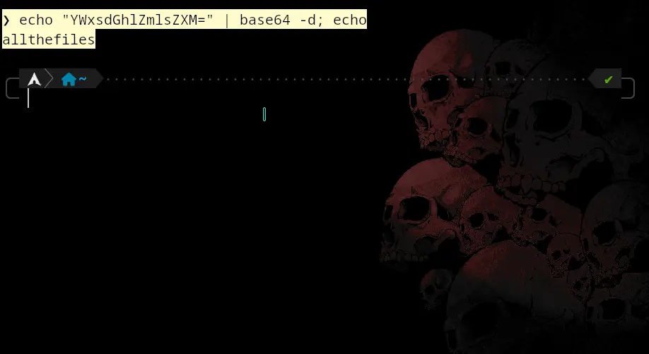 echo "YWxsdGhlZmlsZXM=" | base64 -d; echo