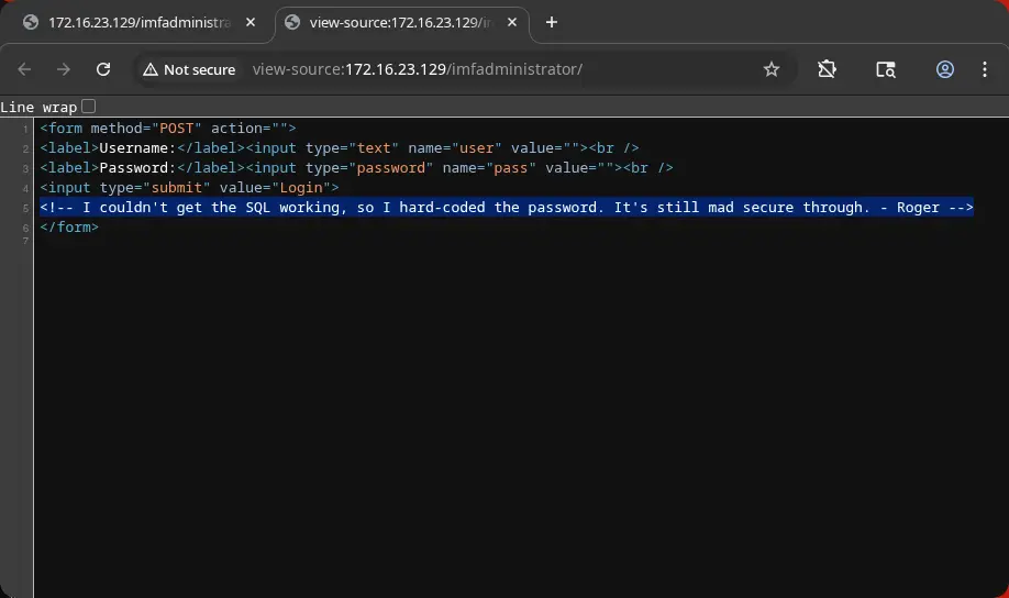 | Flag 2 | imfadministrator | index.php - Código Fuente | Decodificación Base64 |