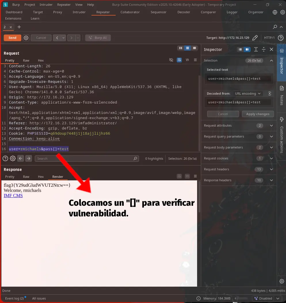 | Flag 3 | continueTOcms | Array Injection Authentication Bypass | Auth Bypass + Decodificación |